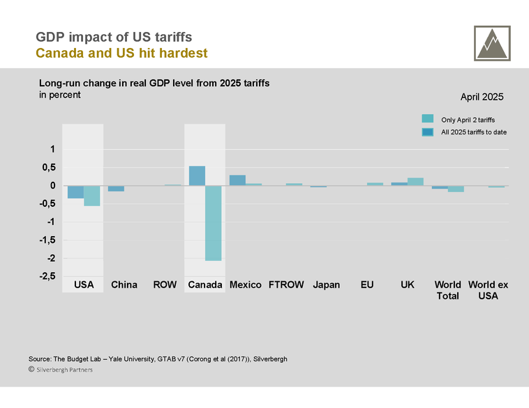 [3] The Budget Lab, Where We Stand: The Fiscal, Economic, and Distributional Effects of All U.S. Tariffs Enacted in 2025 Through April 2; 2025; https://budgetlab.yale.edu/research/where-we-stand-fiscal-economic-and-distributional-effects-all-us-tariffs-enacted-2025-through-april; tariffs modelled ‘in isolation’ which means not tariff responses have been taken into account
